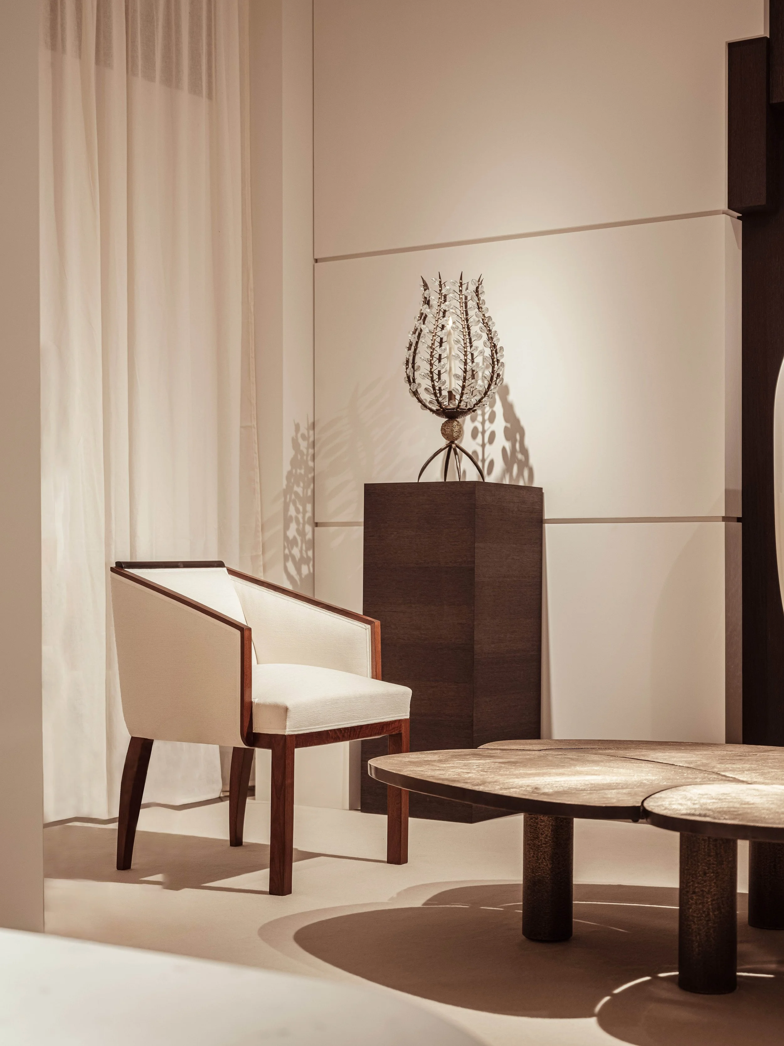 Rénovation d’appartements, transformation de maisons, création d’espaces éphémères : chaque intervention se déploie avec méthode, précision et un sens aigu du détail. Le studio assure également le sourcing de mobilier, textiles, luminaires et pièces d’art, sélectionnés pour leur justesse et leur capacité à enrichir l’identité d’un intérieur. Il conçoit par ailleurs des décors sur-mesure pour événements, expositions ou foires, en accordant une importance particulière à la cohérence visuelle et à la qualité de réalisation.